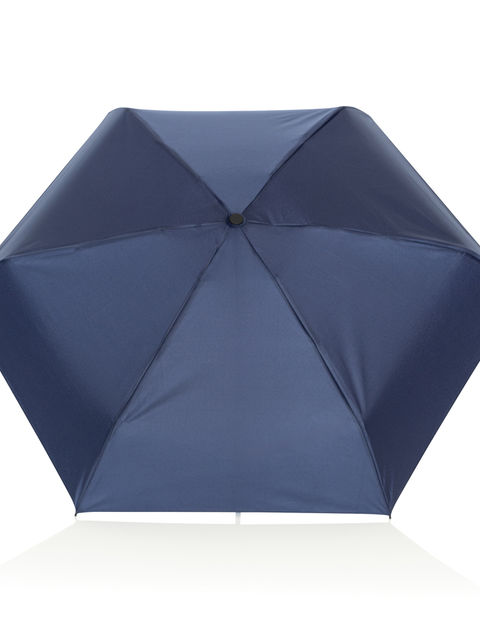 Öt részből áll, lehetővé téve, hogy ultrakompakt legyen, miközben teljes védelmet biztosít. Ultravékony méretének köszönhetően könnyen belefér bármilyen táskába vagy zsebbe. 100% újrahasznosított RPET 190T pongee anyagból készült. AWARE™ nyomjelzővel, amely biztosítja az újrahasznosított anyagok valódi használatát. Az acél tengely és váz, a kétrészes kialakítású, 8 üvegszálas bordával kombinálva, tartósságot és szélállóságot biztosít. Kézzel nyitható és zárható rendszerrel, valamint PU bevonattal ellátott PP fogantyúval a kényelmes fogásért. Digitális termékútlevéllel. PVC-mentes. Egyenként, PU tételszámmal ellátott műanyag zacskóban.