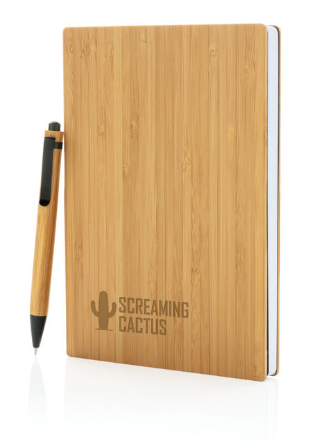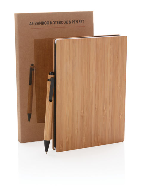 A5-ös méretű bambusz jegyzetfüzet és toll készlet