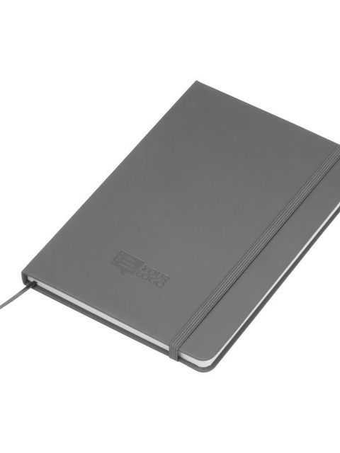 A5 méretű jegyzetfüzet újrahasznosított PU-borítóval és 160 vonalas oldallal, mely újrahasznosított papírból készült.