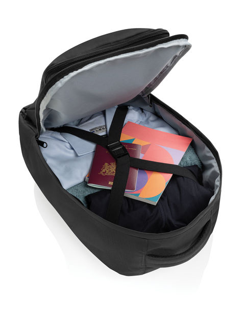 A kiadásokra odafigyelő utazók számára tervezték, akik értékelik a kényelmet. A 100% RPET anyagból készült kompakt hátizsák állítható vállpántokkal, hevederes fogantyúval a tetején és egy cipzáras elülső zsebbel rendelkezik, amely gyors hozzáférést biztosít az alapvető dolgokhoz. A fő rekesz rugalmas bőröndpánttal rendelkezik a további funkcionalitás érdekében. 19 literes űrtartalmával bármelyik repülőgép ülése alá befér. Hétvégi kirándulásokhoz tökéletes. Megfelel a diszkont légitársaságok maximális, ingyenes kézipoggyász méretre vonatkozó követelményeinek, így nem kell külön díjat fizetni a táskáért. Újrahasznosított poliészterből készült, AWARE™ nyomjelzővel. Minden eladott AWARE™ termék után 2%-kal támogatjuk a Water.org nonprofit szervezetet. PVC-mentes.