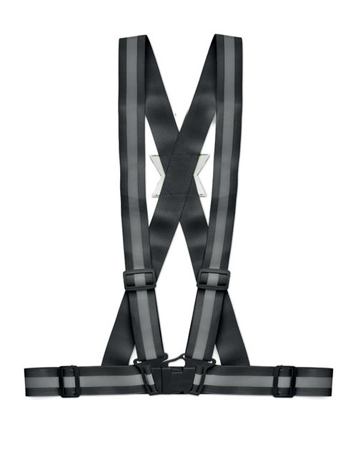 Állítható 360°-os, láthatósági fényvisszaverő kantár ezüst csíkokkal. Csak promóciós célra.