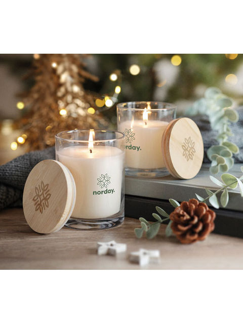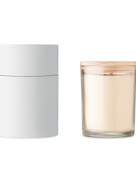 Vanília illatú, növényi alapú viaszgyertya üvegben, bambusz fedéllel, 8 cm átmérőjű papírcsőben, ajándékdobozban. Tegye kellemes illatúvá otthonát ezzel a vanília illatú gyertyával. Ha nem használja a gyertyát, zárja le a bambusz fedéllel, hogy természetesebb megjelenésű dekoráció legyen. Égési idő: 40 óra. A bambusz természetes termék, ezért az egyes darabok színe és mérete kissé eltérhet, ami befolyásolhatja a végső dekorációs eredményt. 240 g.