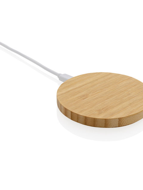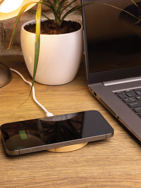 Ultragyors, 15W-os vezeték nélküli töltő FSC® 100% bambusz borítással. A vezeték nélküli töltő az Android legújabb generációival, iPhone 8 és újabb verziókkal kompatibilis. A termék és összetevői PVC-mentesek. RCS újrahasznosított TPE-ből készült 150 cm-es C típusú töltőkábellel. FSC® mix kraftdobozban. C típusú bemenet; Bemenete: 5V/2A; 9V/2A; 12V/1,5A; Vezeték nélküli kimenete: 5V/1A; 9V/1,1A; 9V/1,67A (15 W).