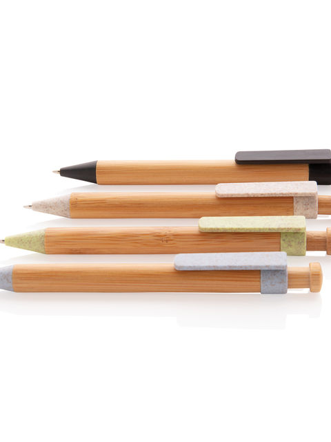 Elegáns toll bambusz és búzaszár anyagból. A klipsz búzaszár tartalma 40%, 60%-ban ABS. Kék Dokumental tintával valamint t/c golyóval a kényelmes íráshoz. Átlagos íráshossz 1200 méter.