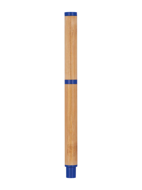 Bambusz írószett, amely egy kék golyóstollat és egy rollertollat tartalmaz ezüst és színes kiegészítőkkel. A készletet környezetbarát kartondobozban szállítjuk.