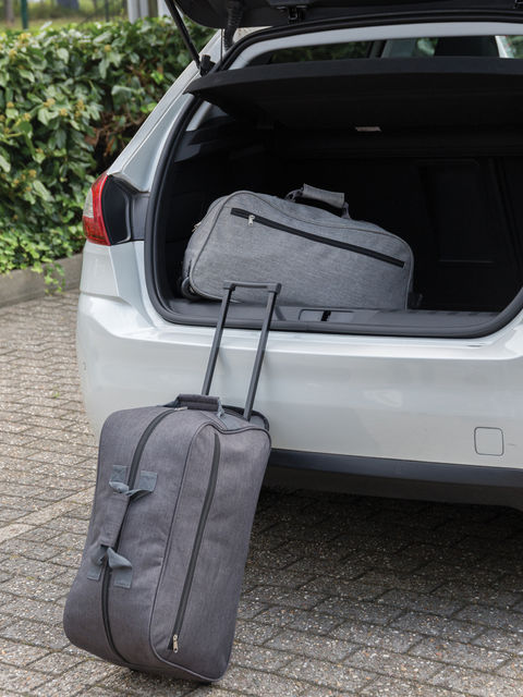 600D strapabíró táska extra erős kéttónusú poliészter szövetből, kihúzható gurulós rendszerrel. Egy első zsebbel és egy cipzáras fő rekesszel rendelkezik.