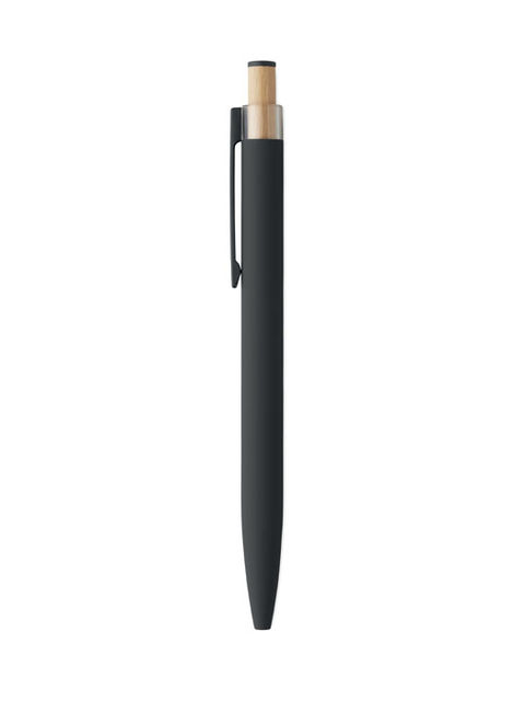 Újrahasznosított alumínium golyóstoll, színazonos tetejű, bambusz nyomógombbal, színazonos fém csíptetővel. Kéken író betéttel.