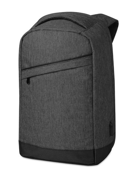 Melírozott színű 600D poliészter hátitáska. Párnázott vállpántok, 1 fő rekesz cipzárral. 13 colos laptoptartó rekesz és egy USB töltőkábel.