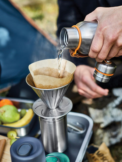 A rozsdamentes acélból készült, szigetelt vizespalack egy elegáns, vákuumzáras palack ami 24 órán át hidegen illetve 12 órán át melegen tartja az italokat. A fedél is teljesen rozsdamentes acélból készült, ami azt jelenti, hogy a víz nem érintkezik műanyaggal. A műbőr hordozóhurokként funkcionál, valamint egy szép dizájnelem. Kizárólag kézzel mosható.