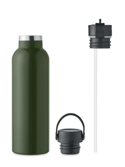Duplafalú, újrahasznosított rozsdamentes acél (90% újrahasznosított rozsdamentes acél, 10% rozsdamentes acél) termoszpalack szivárgásmentes csavaros kupakkal és további cserélhető beépített szívószálas kupakkal. Űrtartalom: 700 ml.