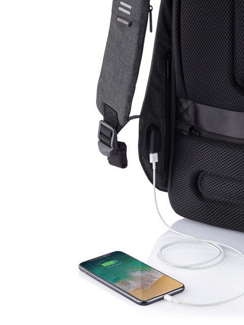 A Bobby Hero vonal a lopásbiztos hátizsákok legújabb generációja melynek segíségével biztonságosan és gondtalanul utazhat és mozoghat. Vágásbiztos kialakítás, rejtett cipzárak és zsebek. A Bobby további kényelmes funkciói a beépített USB kimenet, vízlepergető anyag, világító biztonsági csíkok és mindemellett a bőrönd húzójára akasztható. Belsejében párnázott rekeszek 17"-es laptop valamint legfeljebb 12,9"-es tablet számára. RPET anyagokból AWARE™ nyomjelzővel amely garantálja a valóban újrahasznosított anyagok használatát. 32% újrahasznosított anyagból. Bejegyzett design®