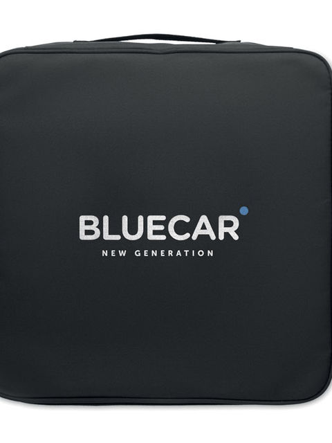 Masszív, párnázott töltőkábeltartó táska 600D RPET anyagból, hálós belső rekeszekkel, az elektromos autók fedélzeti töltője számára.
