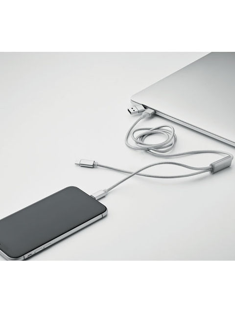 Alumínium töltőkábel 2 az 1-ben C-típusú, USB-A és mikro USB-B bemenetel, C-típusú és mikro USB-B kimenettel. Kábel hossza: 120 cm.