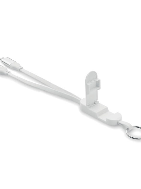 60 W-os kábel újrahasznosított ABS házban, kulcstartóval és telefonállvánnyal. Bemenet: 2 az 1-ben C-típusú és USB-A. Kimenet: C-típusú és mikro-B (2 az 1-ben). Kábel hossza: 26 cm.