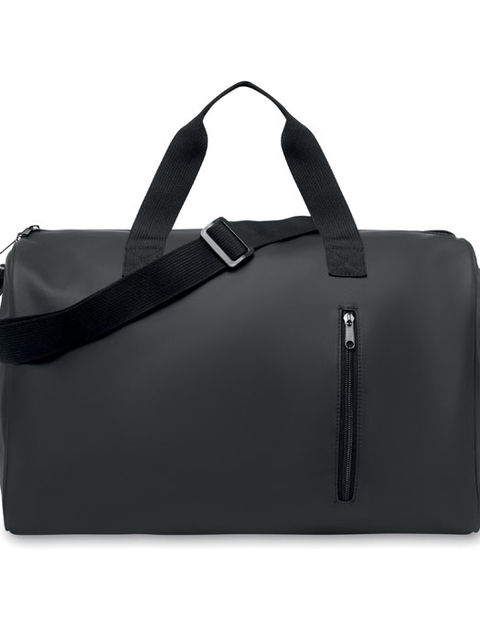 Sport- vagy utazótáska puha PU anyagból, alsó habszivacs megerősítéssel. Egy fő rekesz, cipzáras elülső zseb. 210D RPET poliészter bélés. 2 hordfül, állítható és levehető vállpánt.