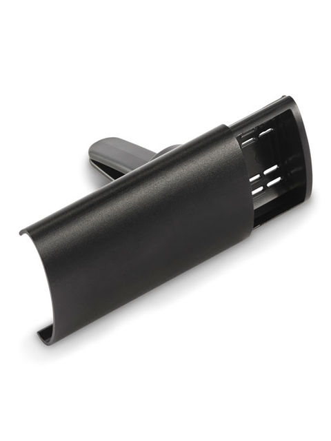 Autós, szellőzőrácsra rögzíthető légfrissítő alumínium fedéllel és ABS csíptetővel. RPET filc betéttel az illatfolyadékhoz (nem tartozék).
