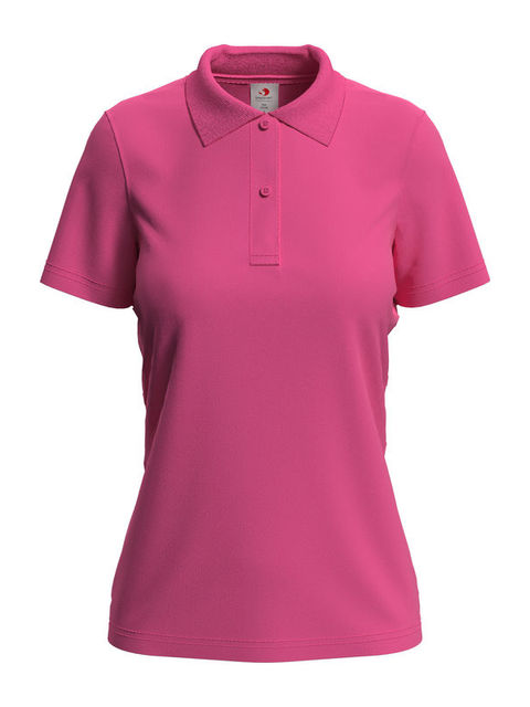 Puha single jersey női pólóing, vonzó piqué hatással, bordázott gallérral és két színben harmonizáló gombbal, mandzsetta nélküli ujjak, nyakszalag, oldalsó varrások, méret- és ápolási címke a gallérban. Anyaga 100% gyűrűsfonású pamut; piqué kinézet (GYH: