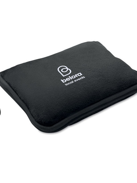 2 az 1-ben összehajtható flanel útitakaró vagy párna szett. 220 g/m². 600D RPET poliészter, gurulós bőröndre illeszkedő pánttal és fogantyúval.