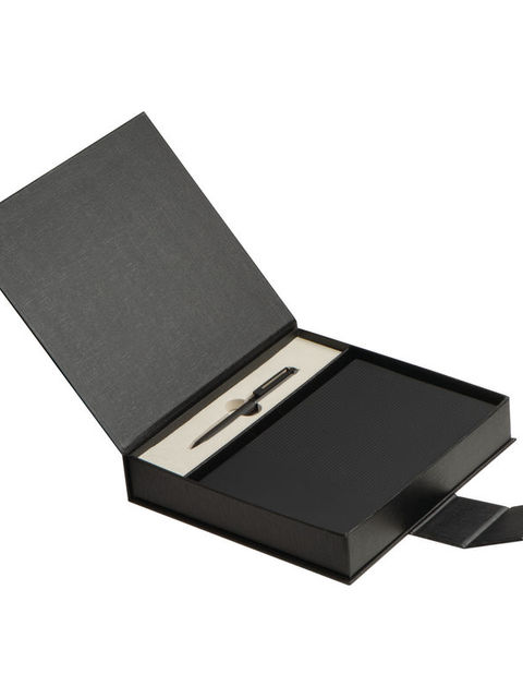 Kiváló ajándékszett, amely egy kék színnel író fém golyóstollból és egy puha fedelű, 128 oldalas, vonalas, újrahasznosított papírból készült noteszből áll. Fekete ajándékdobozba csomagolva, mágneses zárral.