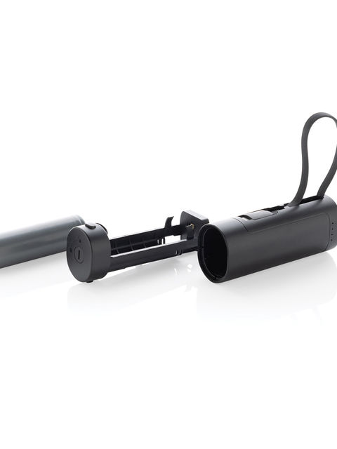 Egyedi kialakítású powerbank ami a termék életciklusának végén ösztönzi az akkumulátor újrahasznosítását. Egyszerűen nyissa ki a powerbanket és vegye ki az A osztályú akkumulátort az akkumulátor biztonságos és felelős újrahasznosításához. A 5000 mAh-s powerbankhez egy integrált C típusú kábel tartozik amit egyszerűen csatlakoztathat a készülékhez, hogy közvetlenül elkezdhesse a töltést. A kábel a powerbank töltésére is használható. Egy további C típusú porttal a saját töltőkábel csatlakoztatásához. Újrahasznosított ABS-ből és újrahasznosított TPE-ből készült. Teljes újrahasznosított anyagtartalom: 30% a termék összsúlya alapján. Az RCS-tanúsítvány biztosítja az újrahasznosított anyagok ellátási láncát. FSC® kraft csomagolásban. PVC-mentes. Bemenet: 5 V/2,1 A Kimenet 5 V/2,4 A.