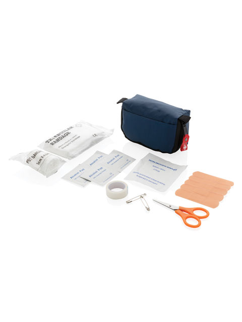 Övre akasztható tok több zsebbel. Tartalma: kötszerek, alkoholos törlő, sebtapasz, olló, biztostű, ragtapasz. EN 13485:2003 tanúsítványnak megfelel.