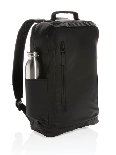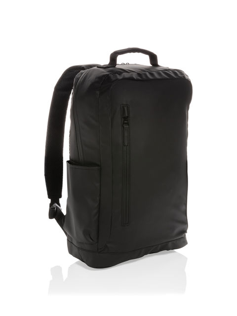 Stílusos, fekete PU laptop hátizsák tágas belső főrekesszel valamint egy 15,6"-es laptop tárolására alkalmas rekesszel. PVC-mentes.
