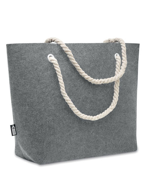 RPET filcből készült strand- vagy bevásárlótáska kötél fülekkel. Anyagvastagság: 2 mm.
