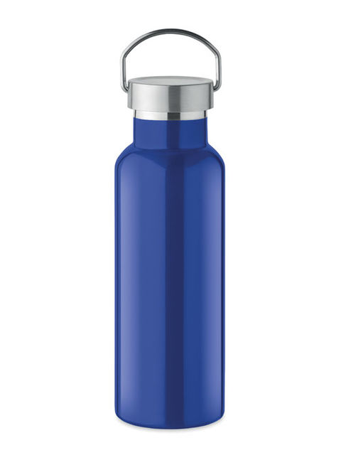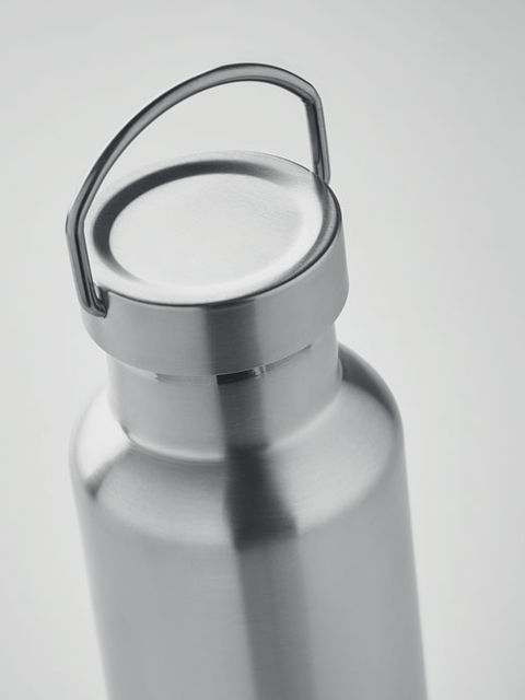 Duplafalú termoszpalack újrahasznosított rozsdamentes acélból (90% újrahasznosított rozsdamentes acél és 10% rozsdamentes acél), fogantyúval ellátott fedéllel. Szivárgásmentes. Űrtartalom: 500 ml.