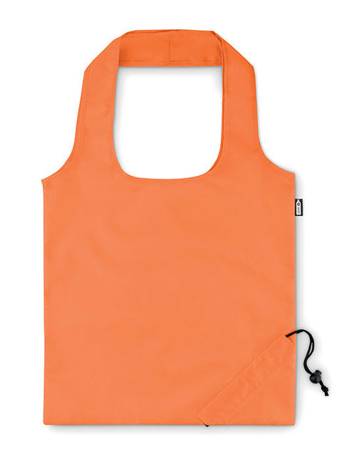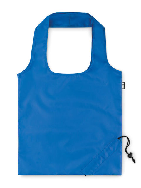 Összehajtható bevásárlótáska 190T RPET anyagból. A táska egyik sarkában kialakított praktikus húzózsinóros résznek köszönhetően kicsire összehúzható. A szublimációs nyomtatás csak a fehér színű terméken érhető el.