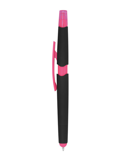 Műanyag golyóstoll szövegkiemelővel, gumírozott tolltesttel, kék tollbetéttel és érintőképernyős funkcióval.