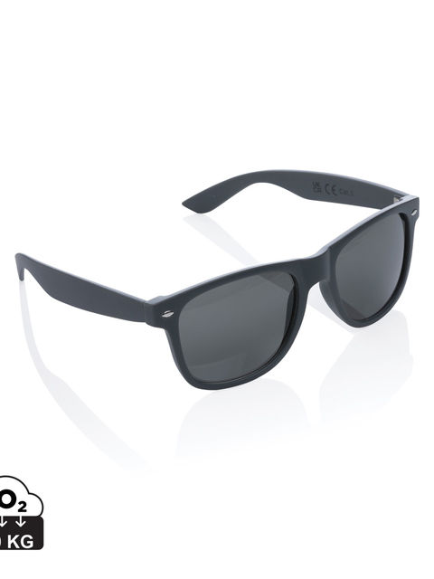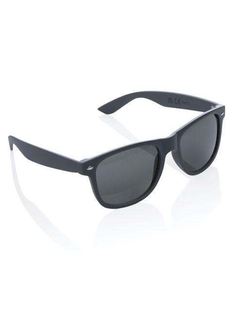 Kiváló minőségű napszemüveg az újrahasznosítás követelményére vonatkozó szabvány (ún. Global Recycled Standard) szerint újrahasznosított PC kerettel. A keret újrahasznosított anyag tartalma 100%-os. Teljes újrahasznosított tartalom: 65% a termék teljes súlya alapján. A GRS tanúsítvány biztosítja az újrahasznosított anyagok ellátási láncát. Füstös akril lencsék, UV 400 védelemmel, CAT 3 kategória. Kraft papír ajándékdobozban.