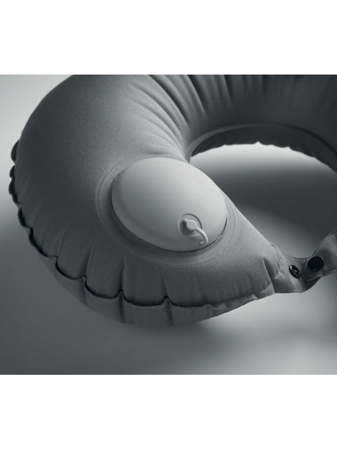 Gyorsan felfújható nyakpárna 50% PET és 50% TPU anyagból, beépített pumpával és leeresztő rendszerrel. Azonos anyagból készült tokkal.