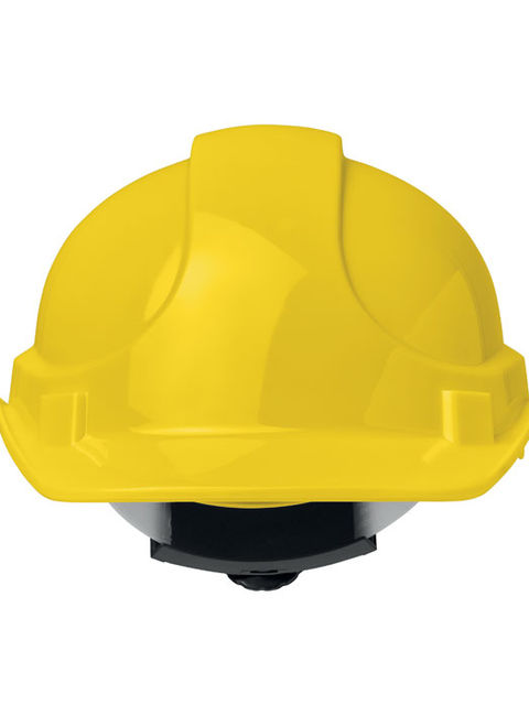 ABS-ből készült védősisak építkezések és raktárak számára. Szellőzőnyílásokkal, levehető állszíjjal és izzadságfelszívó pánttal. Állítható fejpánt (51-63 cm). EN397 szabvány.