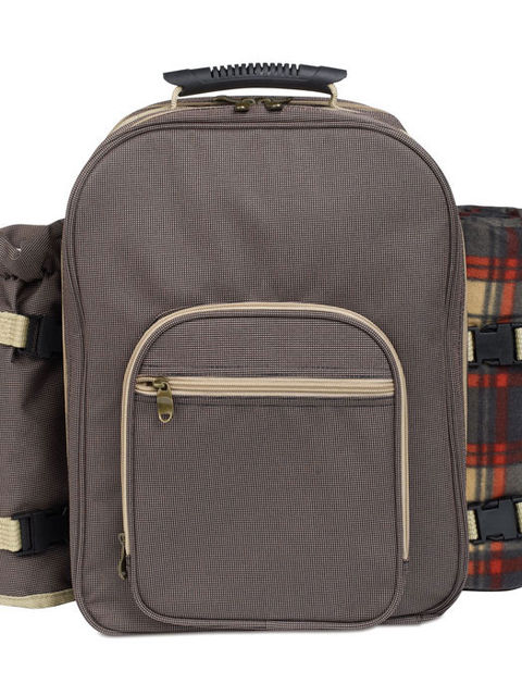 Divatos piknik hátizsák 600D poliészter anyagból. Takaróval, palacktartóval, jó minőségű étkészlettel 4 személy számára.