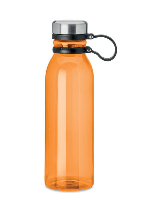 RPET kulacs rozsdamentes acél kupakkal, a könnyű szállítást biztosító TPR gumi pánttal. BPA mentes. Szivárgásmentes. Űrtartalom: 780 ml. Nem alkalmas szénsavas italokhoz.