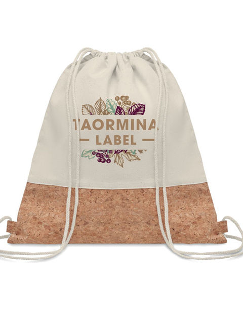 160 g pamut-twill zsinóros tornazsák, parafa résszel. A parafa természetes anyag, szerkezeti jellege és felületi porozitása miatt az egyes tárgyak végső emblémázási eredménye eltéréseket mutathat.