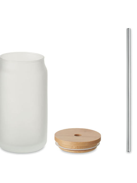 Befőttesüveg pohár speciális, szublimációs nyomtatást lehetővé tévő bevonattal, bambuszfedéllel. Rozsdamentes acél szívószállal. Űrtartalom: 400 ml. A bambusz természetes anyag, színében, mintázatában és méretében esetenként eltérő lehet.