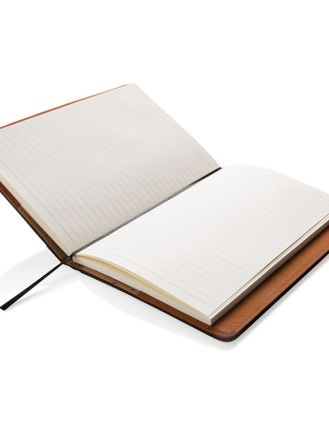 PU anyaggal bevont jegyzetfüzet borító 14x10 cm méretű telefontartó zsebbel valamint további két másik zsebbel egy toll illetve egy powerbank vagy névjegykátyák tárolására. Fekete könyvjelzővel, 160 oldallal (80g/m2). Ha betelt, helyettesíthető A5-ös méretű papírral.