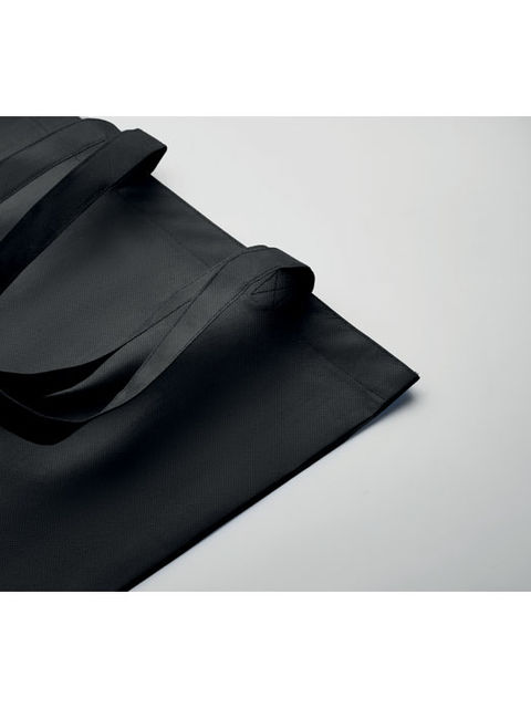Bevásárlótáska RPET nemszőtt anyagból, hosszú fülekkel. 80 g/m² vastag anyag.
