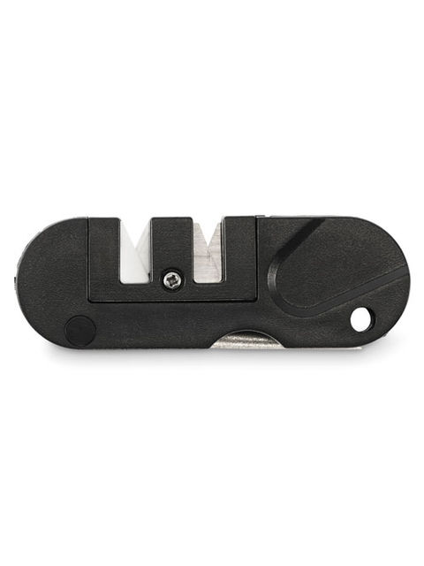 Zsebméretű ABS késélező. Kerámia élfinomító és polírozó, volfrám-karbid penge a gyors élezéshez és sérült pengék javításához, valamint kúpos gyémántporos rúd recés élekhez és általános élezéshez.