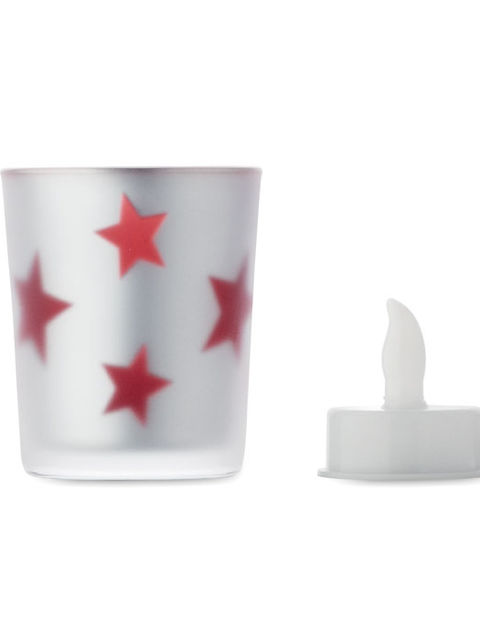 LED mécses PP-ből, üveg tartóban. A működéshez szükséges 1 db CR2032 elemmel szállítjuk.
