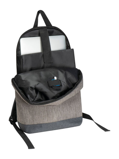 600 D poliészterből készült laptop táska, kényelmes vállpánttal, akasztóval és a jólláthatóság végett integrált LED világítással.