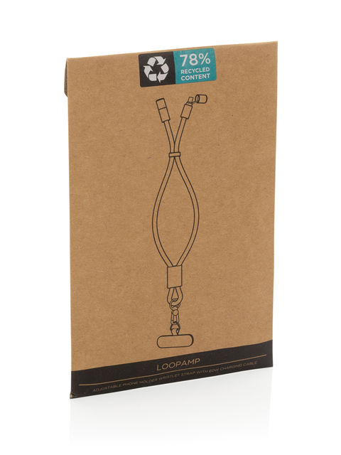 Bemutatkozik a LoopAmp – RCS-tanúsított, újrahasznosított RPET-ből készült telefontartó zsinór. Az RCS (Recycled Claim Standard) igazolja a termék újrahasznosított tartalmát a teljes ellátási láncban. Újrahasznosított anyagtartalom: 78% a teljes tömeg alapján. Prémium minőségű csuklópántként is funkcionál: erős szalagja kényelmesen illeszkedik a csuklóra, a precízen kialakított gyűrű és kampó pedig véd az elejtés ellen – ideális utazáshoz, sporthoz vagy napi teendőkhöz. A LoopAmp egyben akár 60 W-os gyorstöltést biztosító USB-C töltőkábel is. Okostelefon, tablet vagy laptop is tölthető vele, megerősített csatlakozói és tartós anyagai révén megbízható társ a mindennapokban. Adatátvitelt is támogat. PVC-mentes, FSC-minősített csomagolásban.