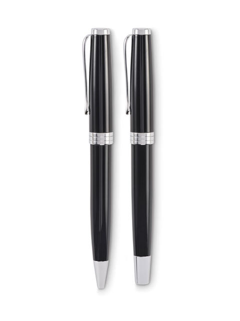 Csavarzáras golyóstollból és roller tollból álló szett újrahasznosított rozsdamentes acél tolltesttel. Kéken, illetve feketén író betéttel. Ajándékdobozban.