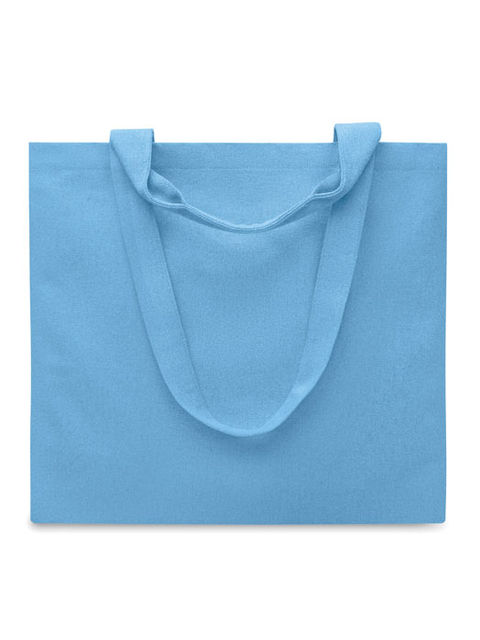 Újrahasznosított anyagból (60% újrahasznosított pamut, 40% újrahasznosított poliészter) készült bevásárló- vagy strandtáska rövid és hosszú fülekkel. 320 g/m².