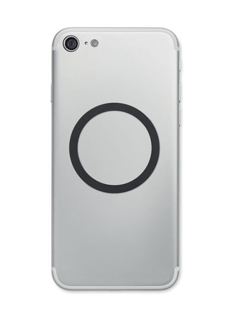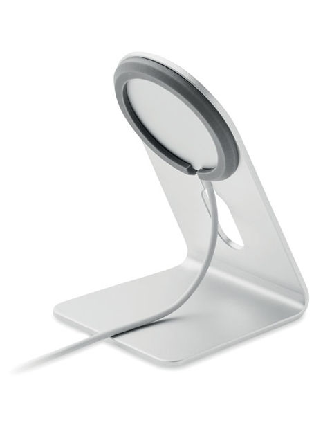 Alumíniumból készült, mágneses hordozható 15W-os vezeték nélküli töltő telefonállvánnyal. További mágneses fémgyűrűvel, amely támogatja más, nem mágneses, vezeték nélküli tölthető telefonok töltését. Teljesítmény: 9V/1,67A (1