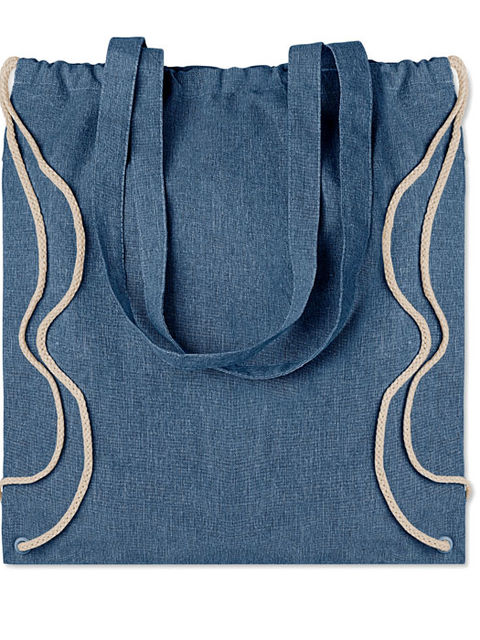Újrahasznosított pamutból és poliészterből készült zsák húzózsinórokkal és hosszú fülekkel (20%/80%). Kb. 140 g vastag anyag. Ez az anyag nyomtatás után zsugorodhat.