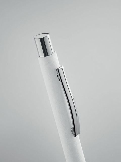 Nyomógombos golyóstoll újrahasznosított papírból, fém csíptetővel, műanyag szerelvényekkel. Kéken író betét. FSC®-certified | FSC RECYCLED, P9, FSC-C213206