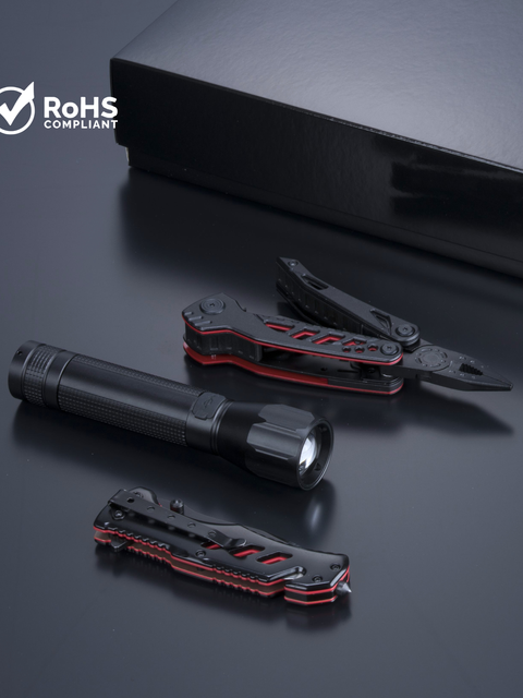 Egy praktikus szett az Optima kollekcióból, amely tartalmaz egy nagy multitoolt, egy mentőkést és egy nagy zseblámpát. A multitool univerzális fogóval rendelkezik az alján, valamint fűrésszel, késsel, Phillips- és lapos csavarhúzóval, üvegnyitóval, konzervnyitóval és körömreszelővel. Van egy Safe funkciója is, amely megakadályozza a kés véletlen becsukódását, biztosítva a felhasználó biztonságát. A mentőkés liner lock biztonsági mechanizmussal van felszerelve, amely megakadályozza a penge becsukódását használat közben. Ergonomikus fogantyúja masszív üvegtörőben és biztonsági öv vágóban végződik. A zseblámpa kiváló minőségű alumíniumból készült, amely tartósságot és sérülésállóságot biztosít. Stroboszkóp üzemmóddal és zoom funkcióval rendelkezik a fénycsóva beállításához. A zseblámpa kábellel újratölthető. Fekete dobozban csomagolva.