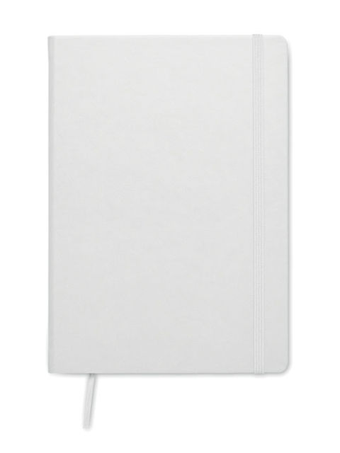 A5 jegyzetfüzet PU keménytáblás borítóval. Cérnafűzött. 200 vonalas oldal (100 lap) 80 g vastag újrahasznosított papírból. Színben illeszkedő elasztikus zárópánt és könyvjelző szalag. EU-ban gyártva.